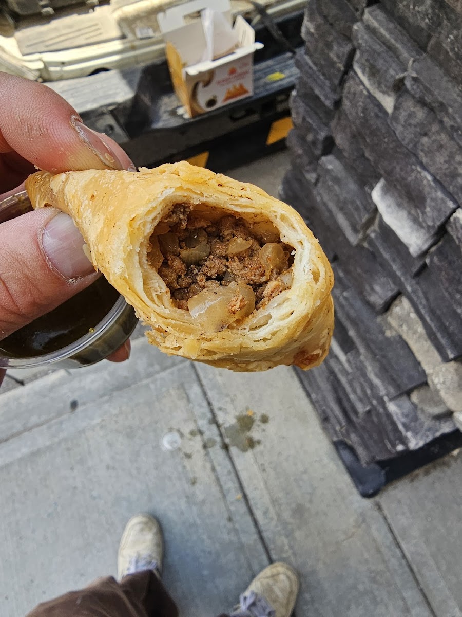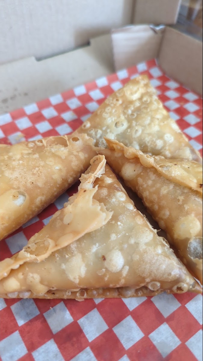 Samosas are hard to review because every family/restaurant does them slightly differently When I was there only beef was available 4 for $7.99. They are delicious and you will enjoy them. Pastry is nice and flaky However, I was expecting some carrot or peas and some more spices inside. It was just boiled beef and onion. I will be back to try the veggie one.