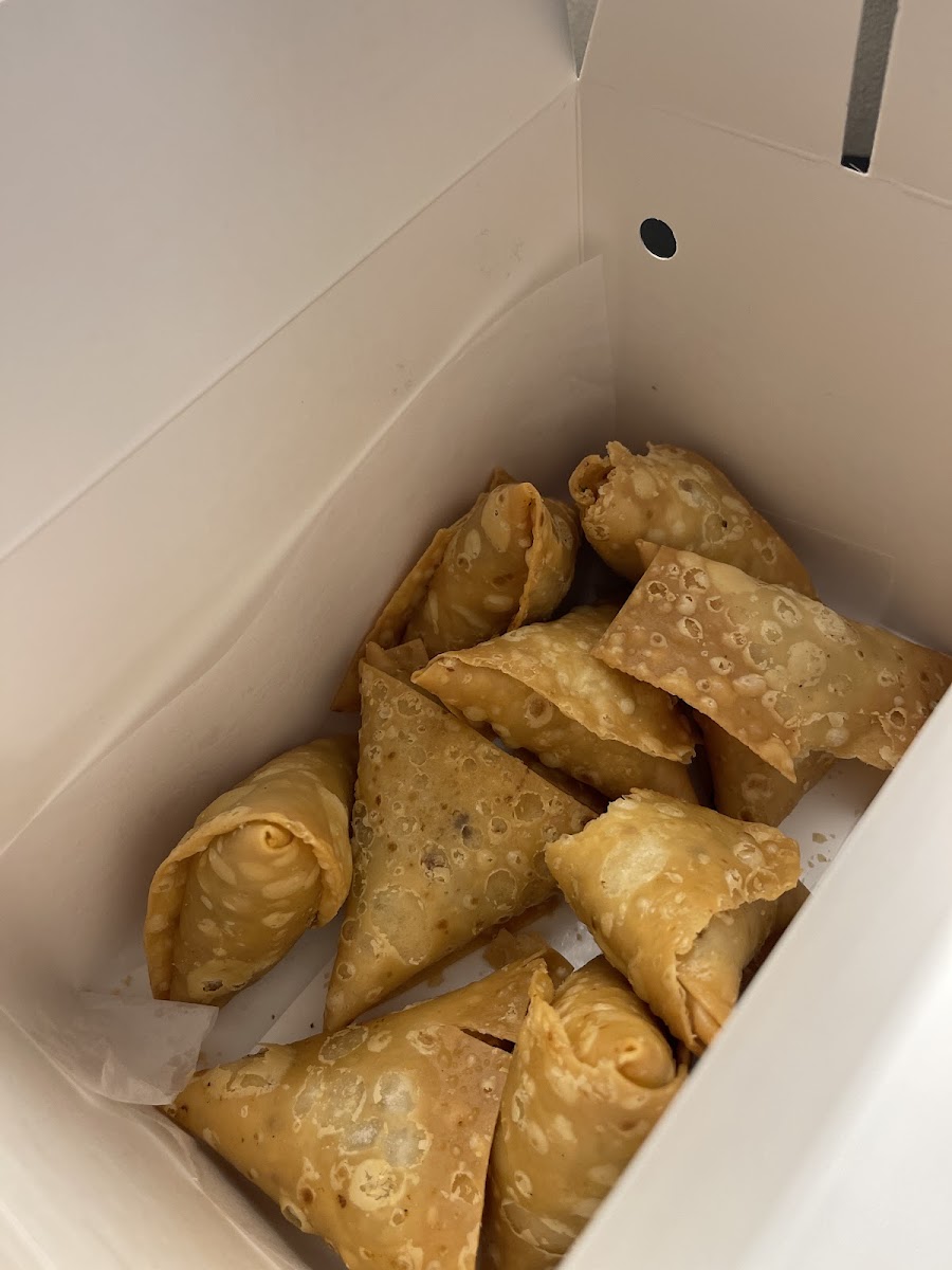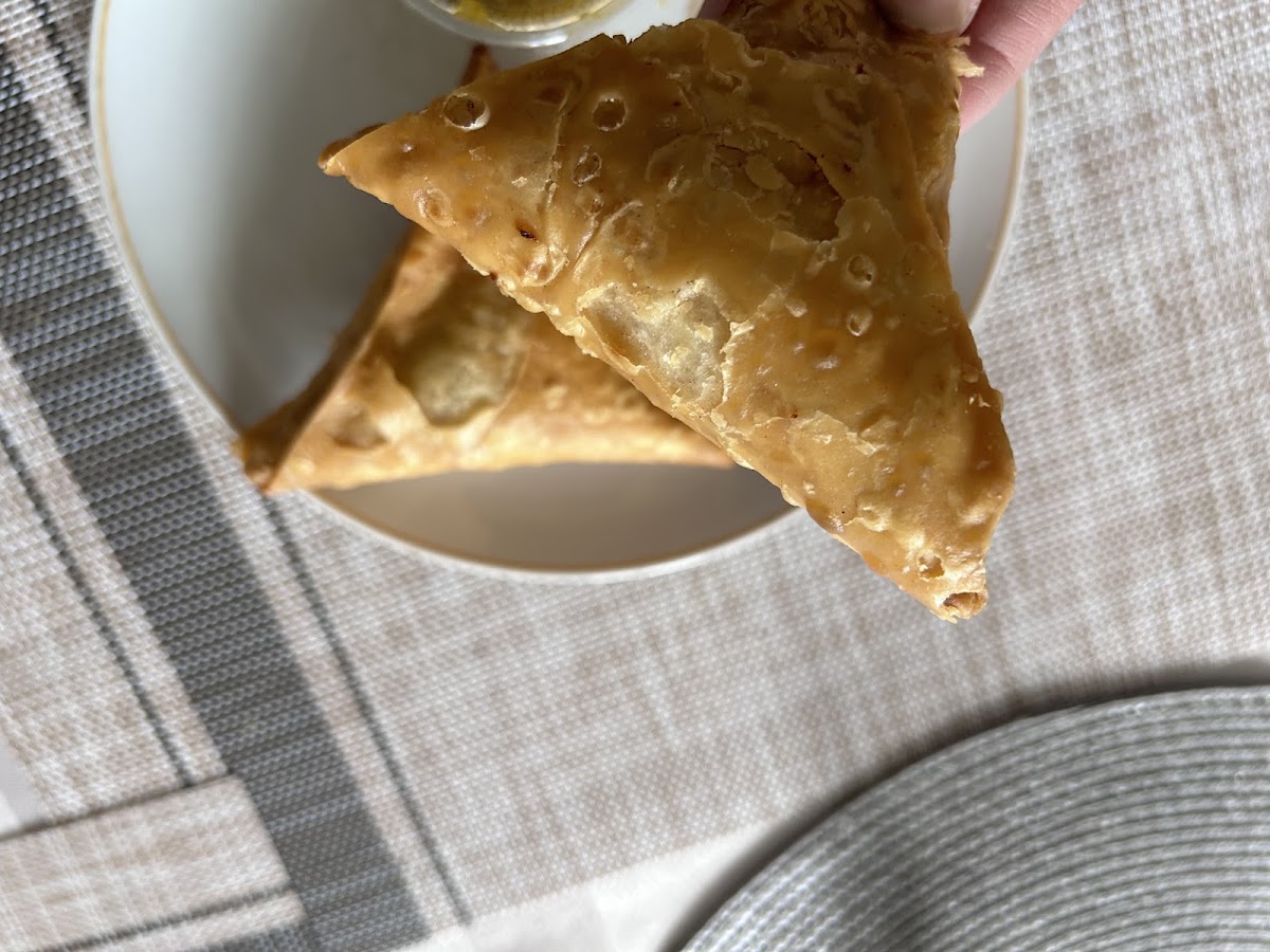 New to samosas:) First time trying them and this place. Was really surprised that they were so good, I really enjoyed them! Given the really old strip mall they are located in I wasn't expecting such a super clean and modern place.